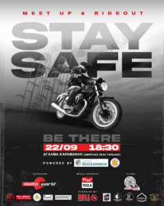 Μια ξεχωριστή και πρωτοποριακή πανελλαδικά εκδήλωση που συνδιοργανώνει η ομάδα μας σε συνεργασία με το κατάστημα πώλησης μοτοσυκλετών – εξοπλισμού και αξεσουάρ “MOTOWORLD” για την προώθηση της χρήσης του προστατευτικού κράνους και του λοιπού εξοπλισμού κατά την οδήγηση της μοτοσυκλέτας καθώς και για την οδική ασφάλεια γενικότερα, από την οποία δεν πρέπει να απουσιάσει κανένας…