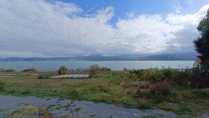 Οι αρχικές σκέψεις που κάναμε να καθίσουμε δίπλα στη λίμνη στον αίθριο χώρο του καταστήματος, “πάγωσαν” από το κρύο που μαζέψαμε στη διαδρομή μετά τον Άγρα και την υγρασία στο παραλίμνιο τμήμα μετά την Άρνισσα. Η υγρασία ήταν τέτοια που παρόλο που φορούσαμε χειμωνιάτικα γάντια τα δάκτυλά μας έγιναν “ξύλα” πίσω από τις προστατευτικές χούφτες.
