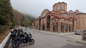 Από τον Πολύμυλο ανεβήκαμε τον παλιό δρόμο προς Καστανιά με την μοναδική σε θέα και τοπία διαδρομή όπου περνώντας μέσα από πυκνή ομίχλη φτάσαμε στο Ιερό Προσκύνημα της Παναγίας Σουμελά. Εκεί πραγματοποιήσαμε στάση ανάψαμε τα κεράκια μας και προσκυνήσαμε την θαυματουργή εικόνα της Παναγιάς του Πόντου.